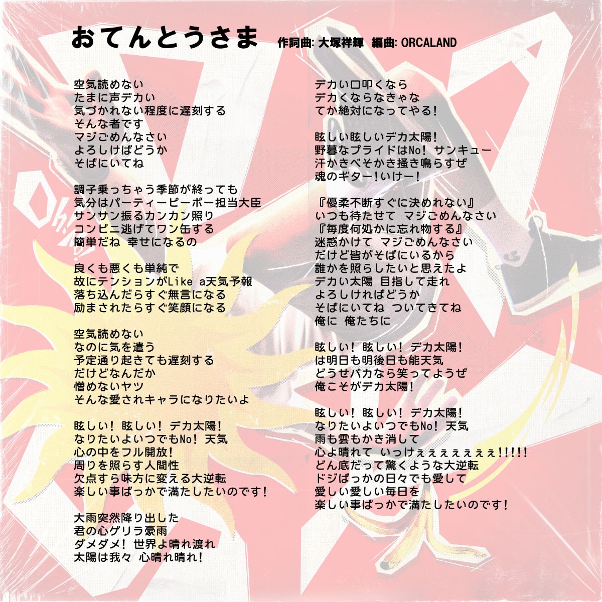 そんな能天気な彼が周りのみんなを明るく照らす「デカ太陽」になりたい!と願うアップナンバーです!